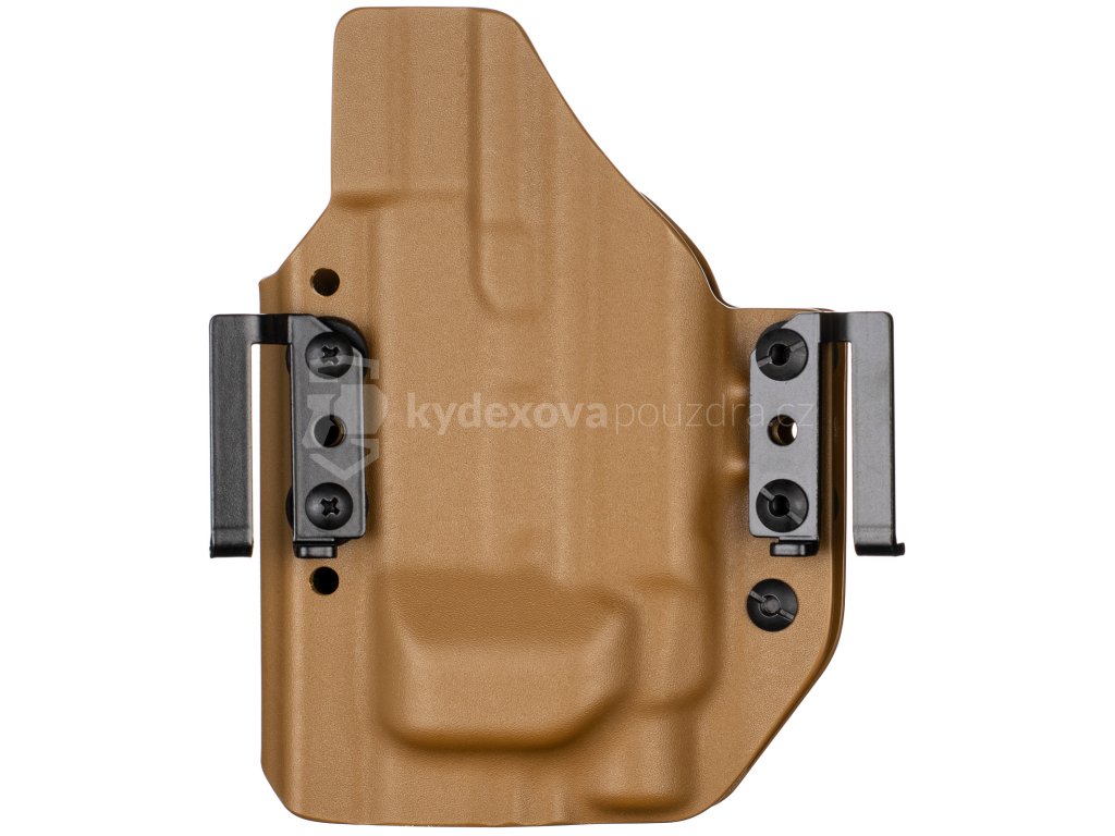 - Glock Gen3, Gen4 a Gen5 pasují do stejného pouzdra (na Gen5 stačí lehce povolit svor)
