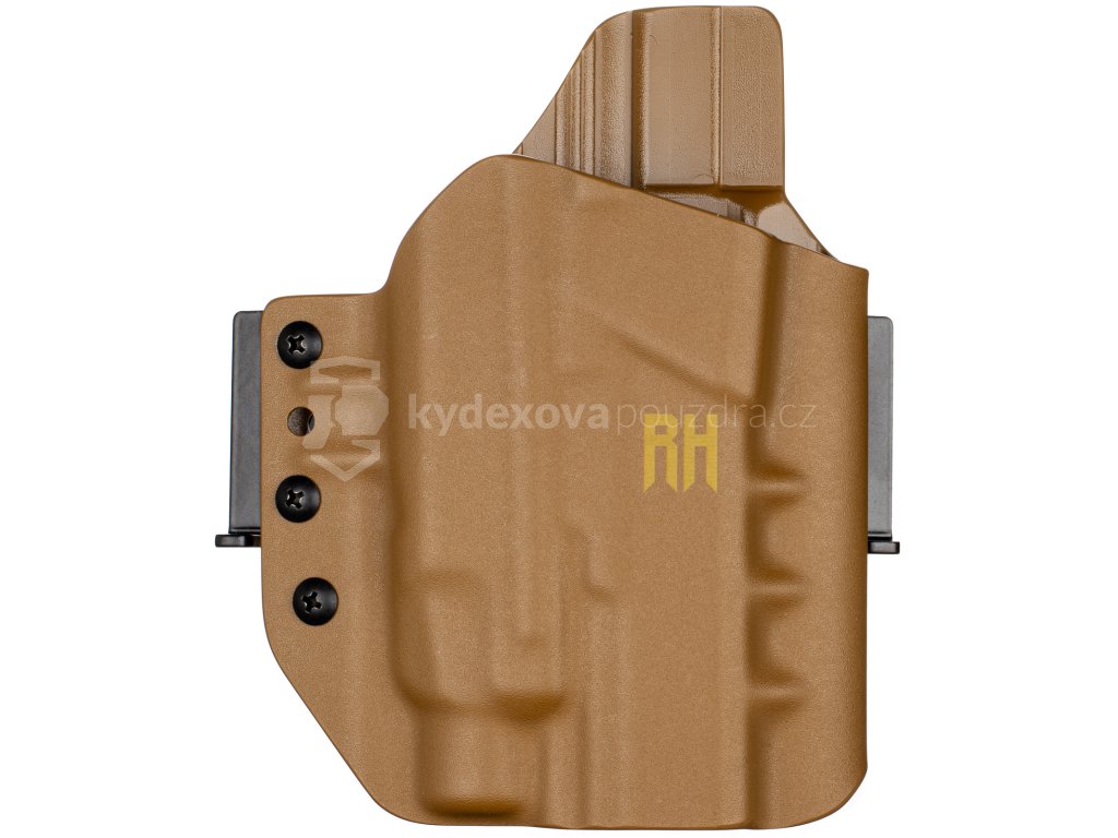 FROGY vnější kydexové pouzdro od výrobce RH Holsters je určené pro taktické a skryté nošení zbraně. Konstrukce pouzdra má nové prvky, které napomáhájí pistoli s pouzdrem lépe skrýt a zároveň ji mít vždy při ruce na opasku. Silnější a odolnější 2,5 mm kydex s žebrováním dělá pouzdro tužším a tím pádem FROGY skvěle doplňuje mezeru mezi OWB vnějšími pouzdry a taktickými pouzdry.